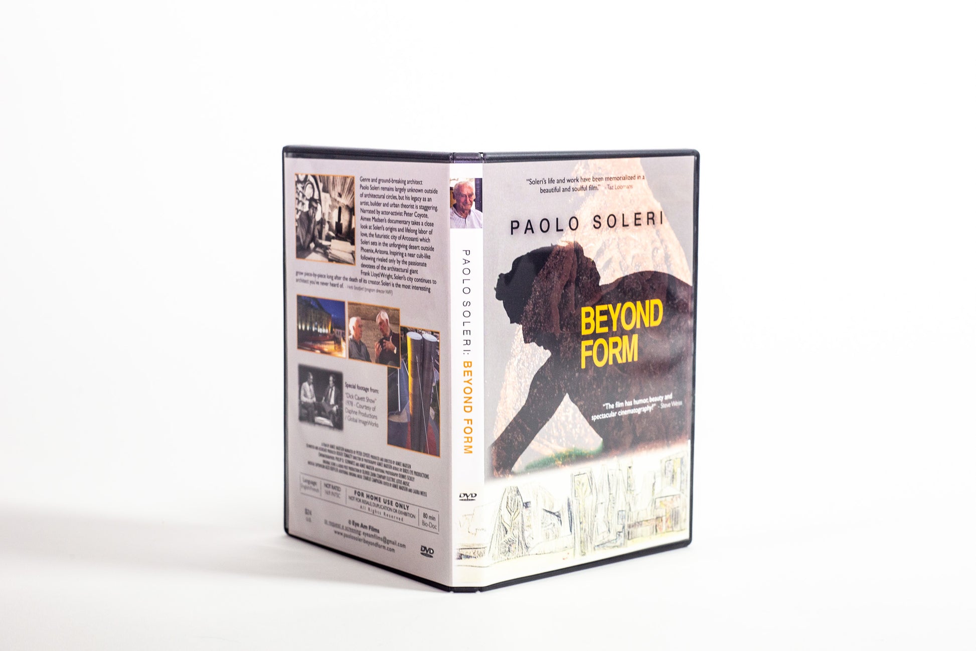 Beyond Form is a cinéma vérité style documentary, that presents a fresh and intimate look at the legendary and multi talented artist, philosopher, urban theorist and architect Paolo Soleri. A man who had a dream to create an environment in harmony with man. This film focuses on how his body of work has inspired thousands of people over the years and why his technique and concepts have staying power. You’ll see why Soleri was green before “green” and “sustainable” ever entered the world lexicon. The lean approach has been a theme that was present through out Soleri’s life. Filmmaker Aimee Madsen created this documentary much in the spirit of Soleri’s style of frugality, doing more with less. (80 min.) Genre and ground-breaking architect Paolo Soleri remains relatively unknown outside of architectural circles, but his legacy as an artist, builder and urban theorist is staggering. Narrated by actor-activist Peter Coyote, Aimee Madsen’s documentary takes a close look at Soleri’s origins and lifelong labor of love– the futuristic city of Arcosanti which Soleri sets in the unforgiving desert outside Phoenix, Arizona. Inspiring a near cult-like following rivaled only by the passionate devotees of the architectural giant Frank Lloyd Wright, Soleri’s city continues to grow piece-by-piece long after the death of its creator. Soleri is the most interesting architect you’ve never heard of. 80 min. (NTSC) “I was really happy that Soleri’s life and work have been memorialized in a beautiful and soulful film. The movie has great footage of Soleri in his youth, building things with his own hands. And it shows the communities he created ― Cosanti and Arcosanti ― and the profound impact those communitoes had on various people who have involved in them.”―Taz Loomans