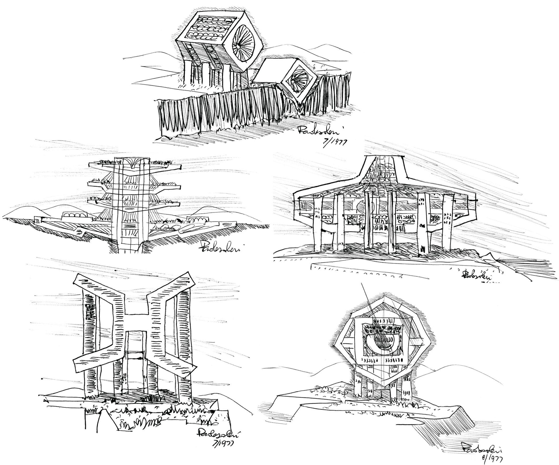 When Soleri started exploring urban morphology in a large scale, some of the cities on his creative canvas expanded 3-dimensionally organized structure for many thousands of people. Especially in his theory of Arcology (Architecture and Ecology), a single structure embodies a container for human culture that functions as a hyper organism.